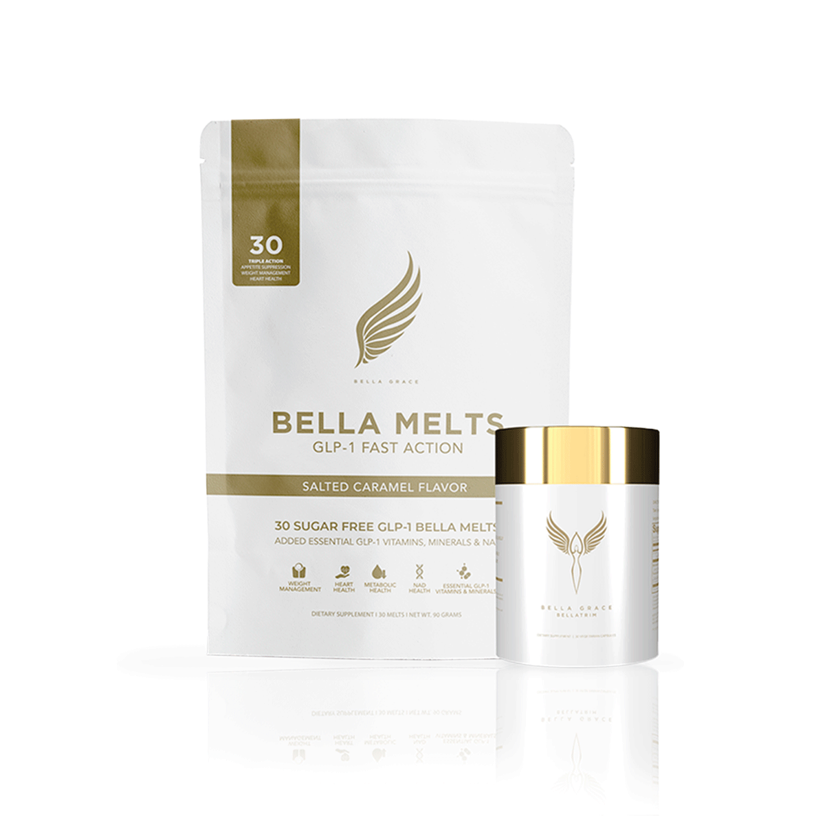 Táto kombinácia prirodzene aktivuje produkciu GLP-1 vo vašom tele bez injekcií alebo nepríjemných vedľajších účinkov. Bella Melts a BellaTrim spoločne podporujú inteligentnejší a udržateľnejší prístup k regulácii hmotnosti tým, že potláčajú chuť do jedla, znižujú hladinu stresových hormónov a podporujú metabolické zdravie.